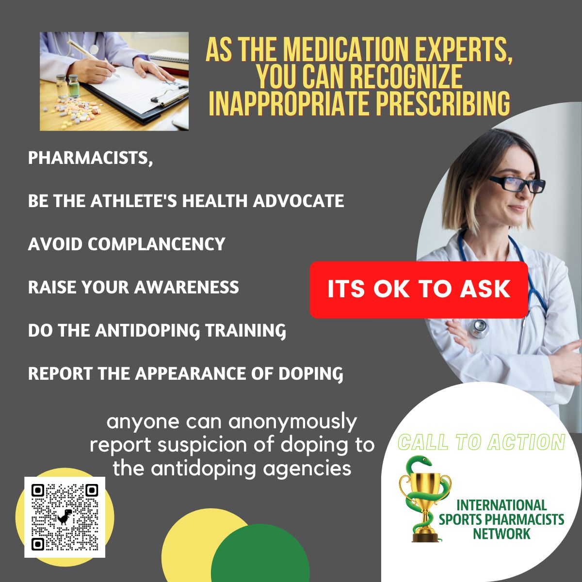 Pharmacists should be trained to recognize and report unusual prescribing trends that involve WADA Prohibited Substances or NCAA Banned Substances. Does it give the appearance of doping? Does it violate anti-doping laws?